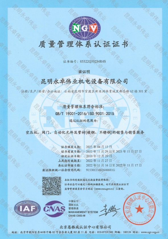 質(zhì)量管理體系認證證書