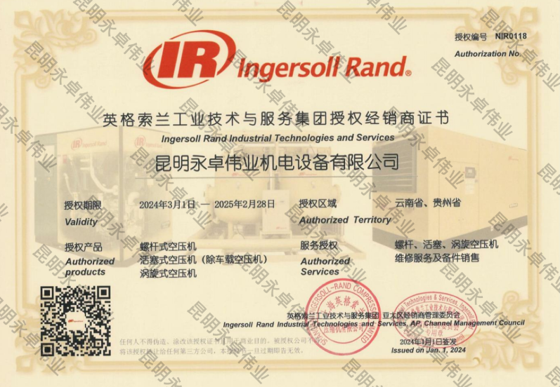 上海英格索蘭經(jīng)銷商證書