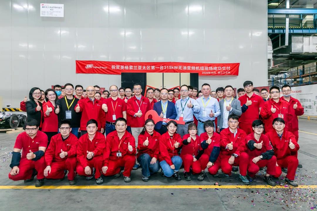 英格索蘭亞太區(qū)第一臺315kW無油變頻機(jī)組現(xiàn)場圓滿交付
